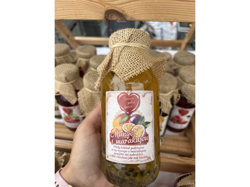 - Složení : voda, řepný cukr, dřeň a šťáva z marakuji a manga min.30 %, kyselina citrónová